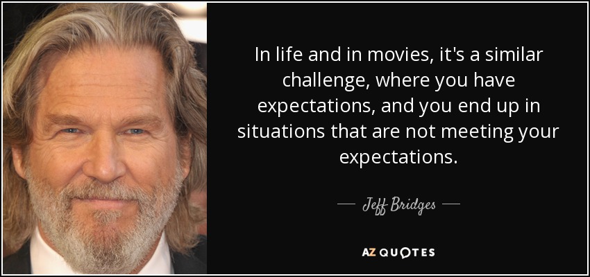 In life and in movies, it's a similar challenge, where you have expectations, and you end up in situations that are not meeting your expectations.