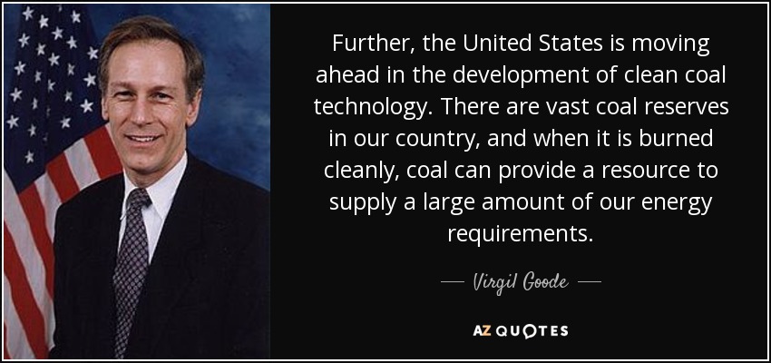 Further, the United States is moving ahead in the development of clean coal technology. There are vast coal reserves in our country, and when it is burned cleanly, coal can provide a resource to supply a large amount of our energy requirements.