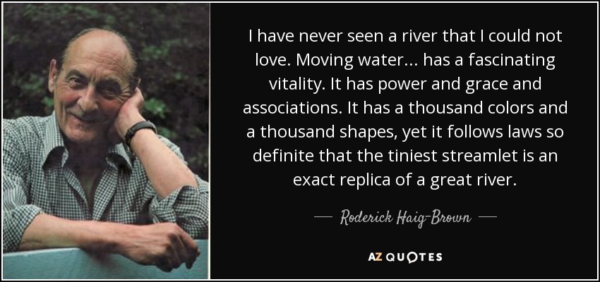 I have never seen a river that I could not love. Moving water... has a fascinating vitality. It has power and grace and associations. It has a thousand colors and a thousand shapes, yet it follows laws so definite that the tiniest streamlet is an exact replica of a great river.