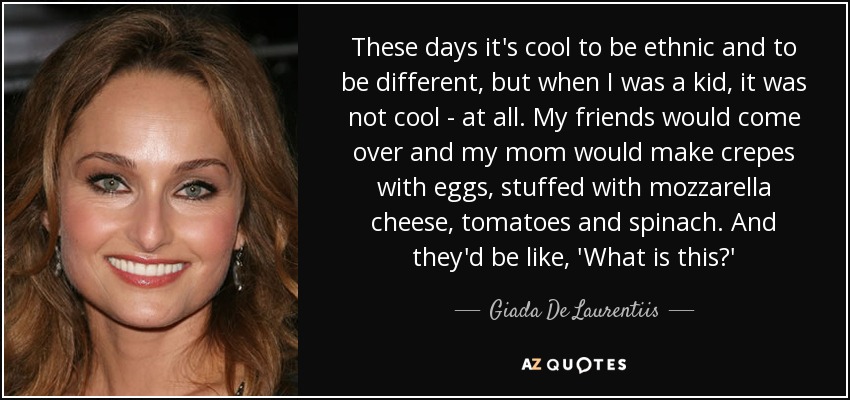 These days it's cool to be ethnic and to be different, but when I was a kid, it was not cool - at all. My friends would come over and my mom would make crepes with eggs, stuffed with mozzarella cheese, tomatoes and spinach. And they'd be like, 'What is this?'