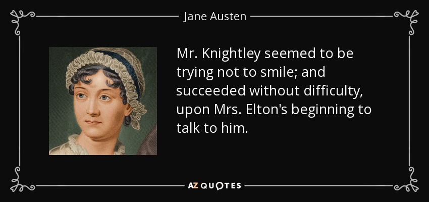 Mr. Knightley seemed to be trying not to smile; and succeeded without difficulty, upon Mrs. Elton's beginning to talk to him.