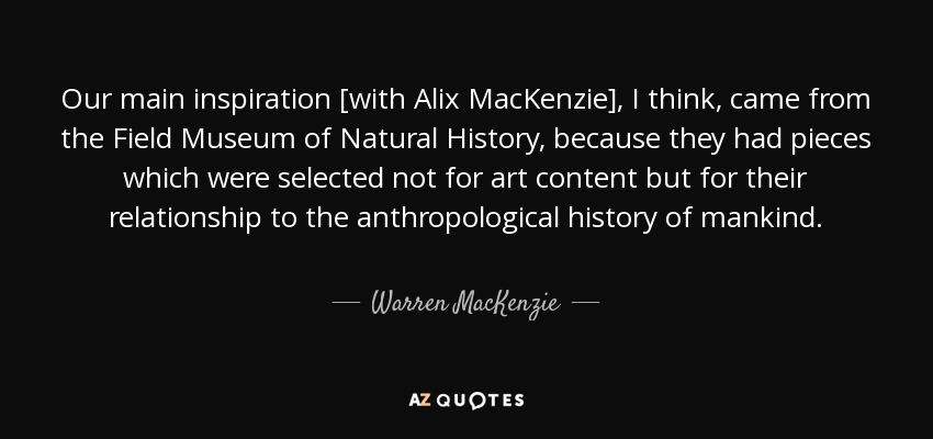Our main inspiration [with Alix MacKenzie], I think, came from the Field Museum of Natural History, because they had pieces which were selected not for art content but for their relationship to the anthropological history of mankind.