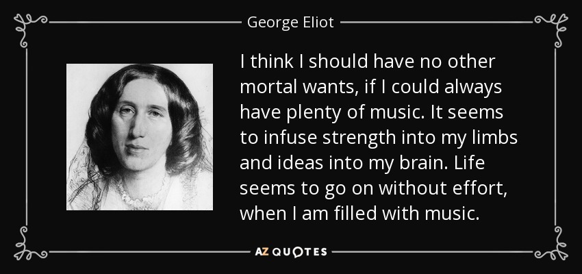 I think I should have no other mortal wants, if I could always have plenty of music. It seems to infuse strength into my limbs and ideas into my brain. Life seems to go on without effort, when I am filled with music.