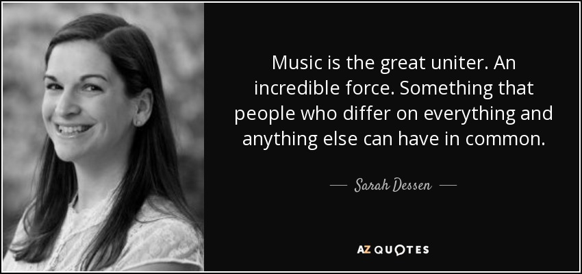 Music is the great uniter. An incredible force. Something that people who differ on everything and anything else can have in common.