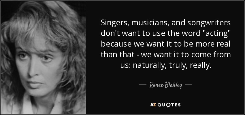 Singers, musicians, and songwriters don't want to use the word "acting" because we want it to be more real than that - we want it to come from us: naturally, truly, really.