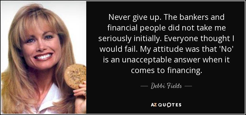 Never give up. The bankers and financial people did not take me seriously initially. Everyone thought I would fail. My attitude was that 'No' is an unacceptable answer when it comes to financing.