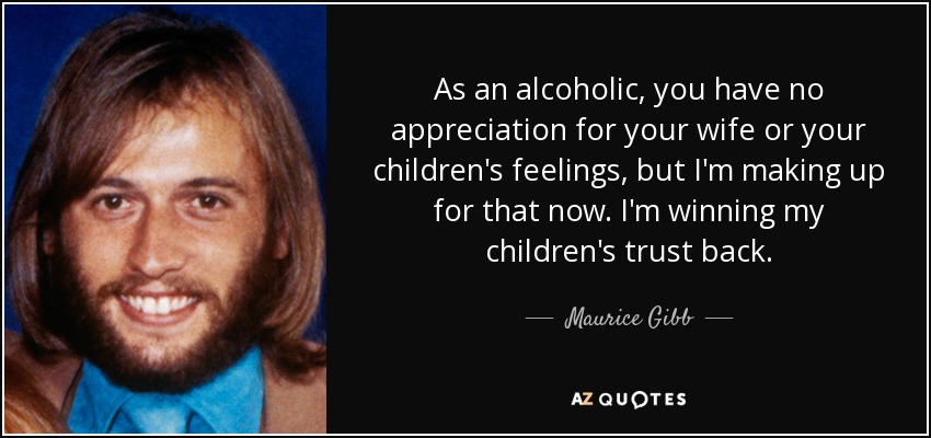As an alcoholic, you have no appreciation for your wife or your children's feelings, but I'm making up for that now. I'm winning my children's trust back.