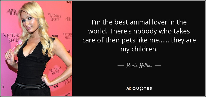 I'm the best animal lover in the world. There's nobody who takes care of their pets like me...... they are my children.