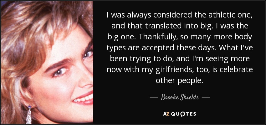 I was always considered the athletic one, and that translated into big. I was the big one. Thankfully, so many more body types are accepted these days. What I've been trying to do, and I'm seeing more now with my girlfriends, too, is celebrate other people.