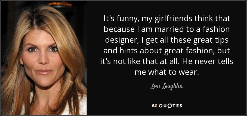 It's funny, my girlfriends think that because I am married to a fashion designer, I get all these great tips and hints about great fashion, but it's not like that at all. He never tells me what to wear.
