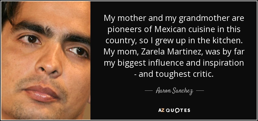 My mother and my grandmother are pioneers of Mexican cuisine in this country, so I grew up in the kitchen. My mom, Zarela Martinez, was by far my biggest influence and inspiration - and toughest critic.