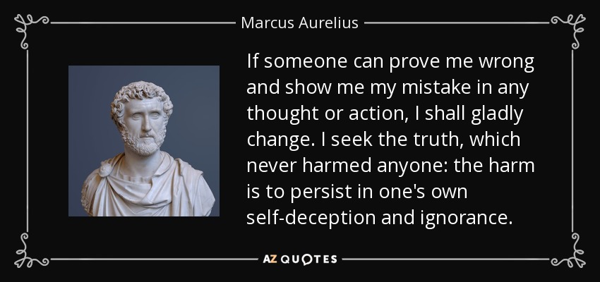 If someone can prove me wrong and show me my mistake in any thought or action, I shall gladly change. I seek the truth, which never harmed anyone: the harm is to persist in one's own self-deception and ignorance.