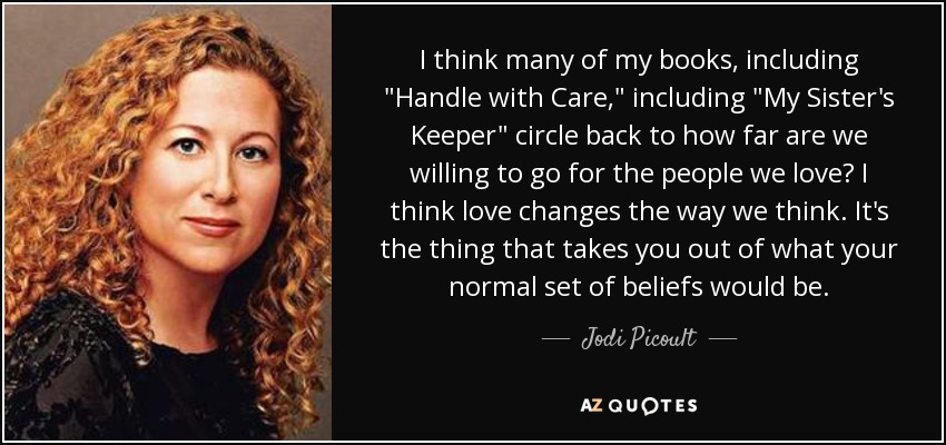 I think many of my books, including "Handle with Care," including "My Sister's Keeper" circle back to how far are we willing to go for the people we love? I think love changes the way we think. It's the thing that takes you out of what your normal set of beliefs would be.