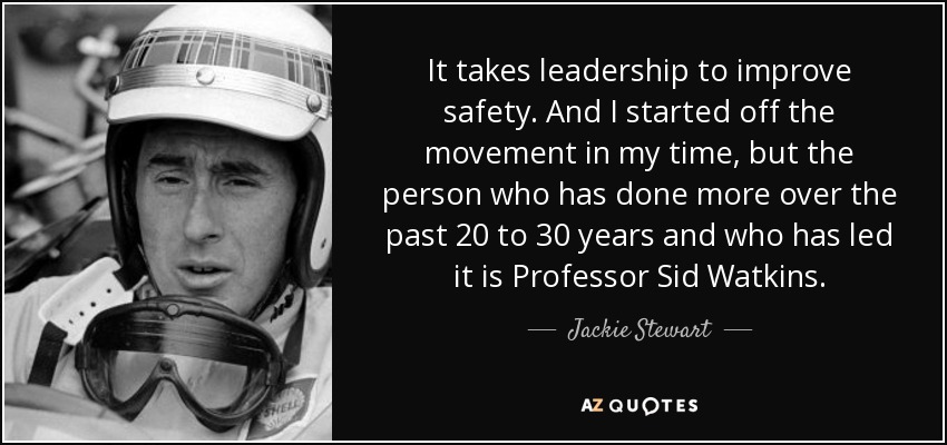 It takes leadership to improve safety. And I started off the movement in my time, but the person who has done more over the past 20 to 30 years and who has led it is Professor Sid Watkins.