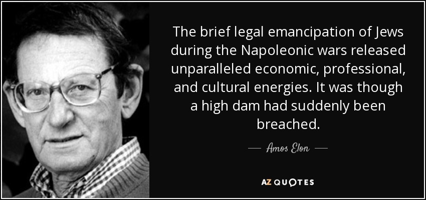 The brief legal emancipation of Jews during the Napoleonic wars released unparalleled economic, professional, and cultural energies. It was though a high dam had suddenly been breached.