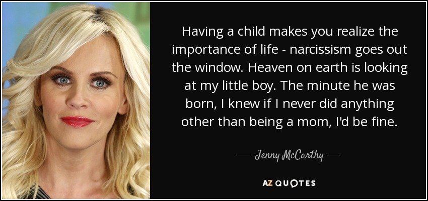 Having a child makes you realize the importance of life - narcissism goes out the window. Heaven on earth is looking at my little boy. The minute he was born, I knew if I never did anything other than being a mom, I'd be fine.