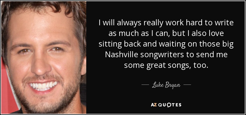 I will always really work hard to write as much as I can, but I also love sitting back and waiting on those big Nashville songwriters to send me some great songs, too.