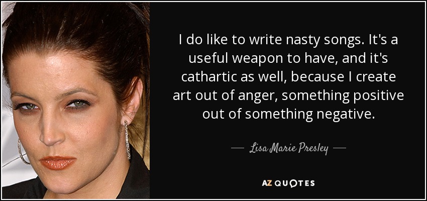 I do like to write nasty songs. It's a useful weapon to have, and it's cathartic as well, because I create art out of anger, something positive out of something negative.