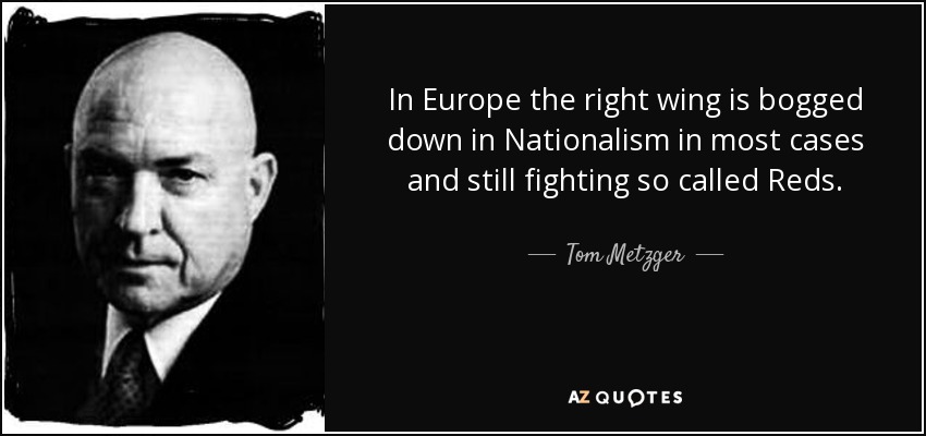 In Europe the right wing is bogged down in Nationalism in most cases and still fighting so called Reds.