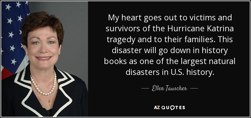 My heart goes out to victims and survivors of the Hurricane Katrina tragedy and to their families. This disaster will go down in history books as one of the largest natural disasters in U.S. history.