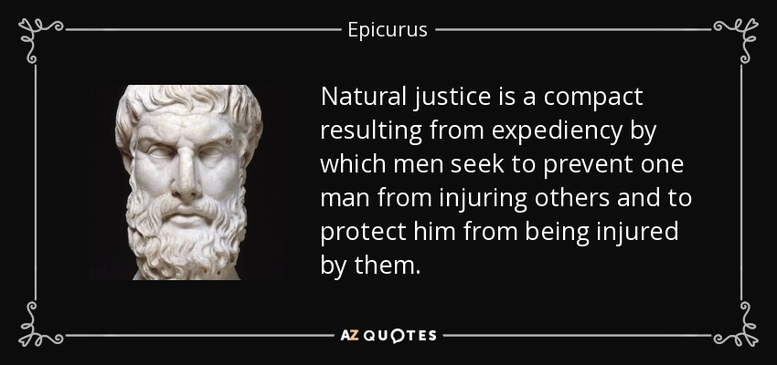 Natural justice is a compact resulting from expediency by which men seek to prevent one man from injuring others and to protect him from being injured by them.