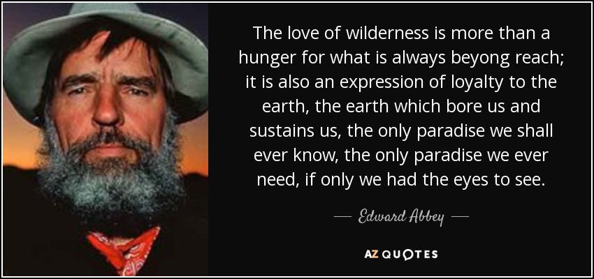 The love of wilderness is more than a hunger for what is always beyong reach; it is also an expression of loyalty to the earth, the earth which bore us and sustains us, the only paradise we shall ever know, the only paradise we ever need, if only we had the eyes to see.