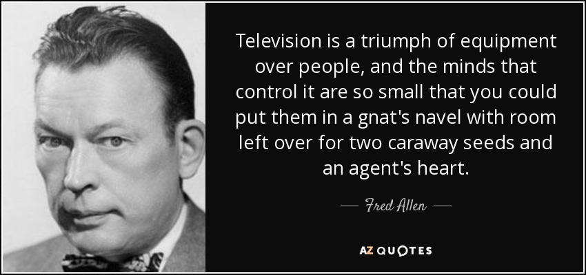 Television is a triumph of equipment over people, and the minds that control it are so small that you could put them in a gnat's navel with room left over for two caraway seeds and an agent's heart.