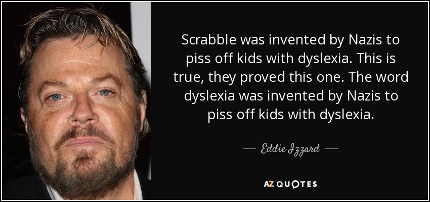 Scrabble was invented by Nazis to piss off kids with dyslexia. This is true, they proved this one. The word dyslexia was invented by Nazis to piss off kids with dyslexia.