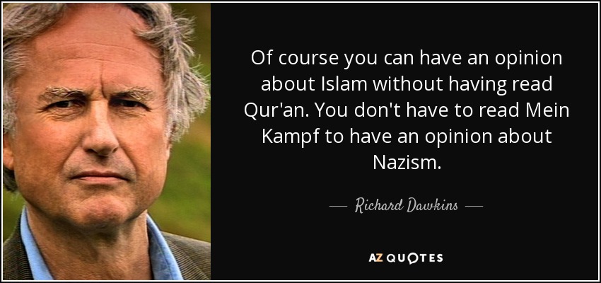 Of course you can have an opinion about Islam without having read Qur'an. You don't have to read Mein Kampf to have an opinion about Nazism.