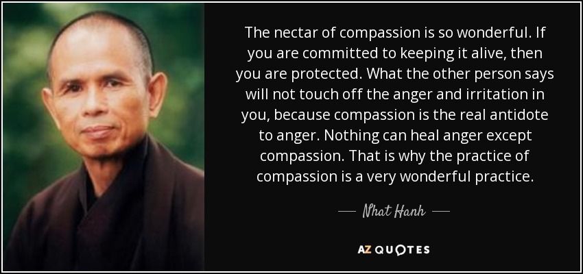 The nectar of compassion is so wonderful. If you are committed to keeping it alive, then you are protected. What the other person says will not touch off the anger and irritation in you, because compassion is the real antidote to anger. Nothing can heal anger except compassion. That is why the practice of compassion is a very wonderful practice.