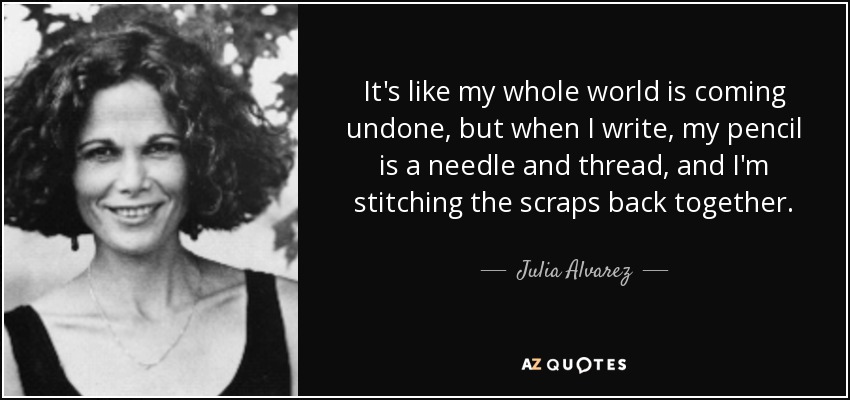 It's like my whole world is coming undone, but when I write, my pencil is a needle and thread, and I'm stitching the scraps back together.