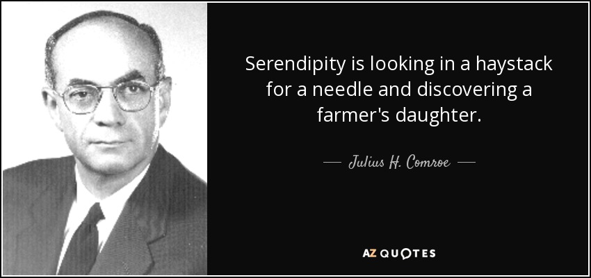 Serendipity is looking in a haystack for a needle and discovering a farmer's daughter.