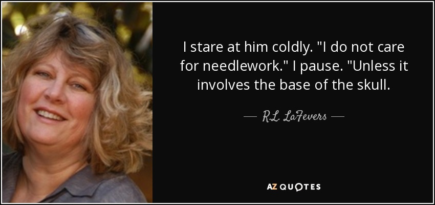 I stare at him coldly. "I do not care for needlework." I pause. "Unless it involves the base of the skull.