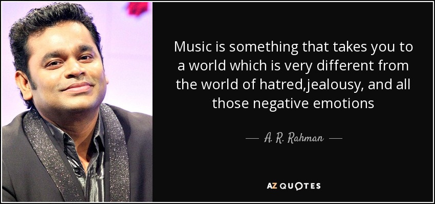 Music is something that takes you to a world which is very different from the world of hatred,jealousy, and all those negative emotions