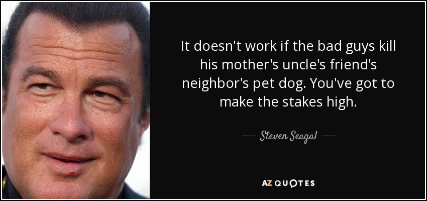 It doesn't work if the bad guys kill his mother's uncle's friend's neighbor's pet dog. You've got to make the stakes high.