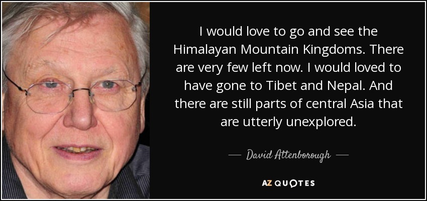 I would love to go and see the Himalayan Mountain Kingdoms. There are very few left now. I would loved to have gone to Tibet and Nepal. And there are still parts of central Asia that are utterly unexplored.