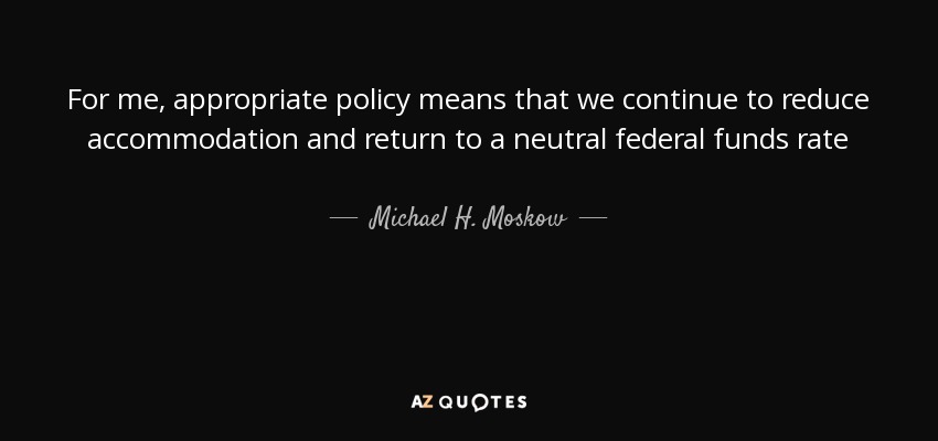 For me, appropriate policy means that we continue to reduce accommodation and return to a neutral federal funds rate