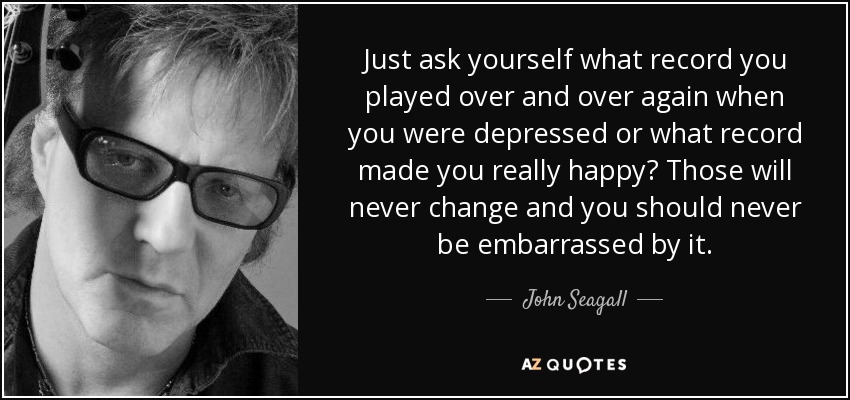 Just ask yourself what record you played over and over again when you were depressed or what record made you really happy? Those will never change and you should never be embarrassed by it.