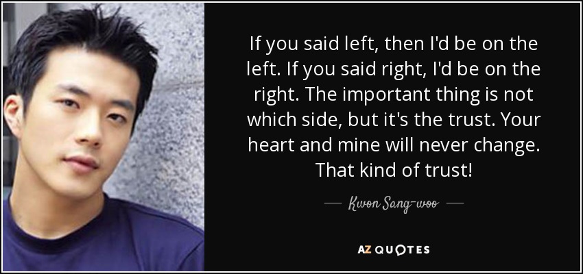 If you said left, then I'd be on the left. If you said right, I'd be on the right. The important thing is not which side, but it's the trust. Your heart and mine will never change. That kind of trust!