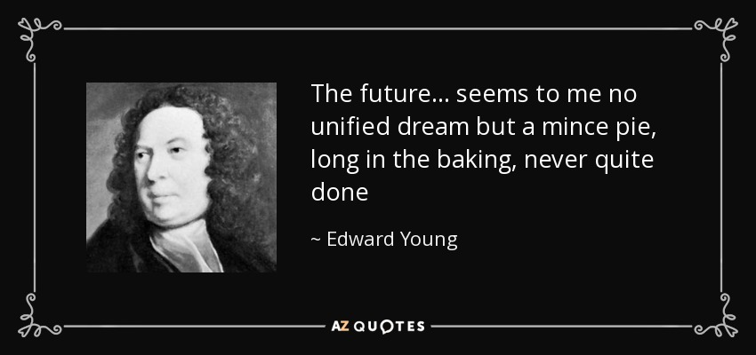 The future... seems to me no unified dream but a mince pie, long in the baking, never quite done