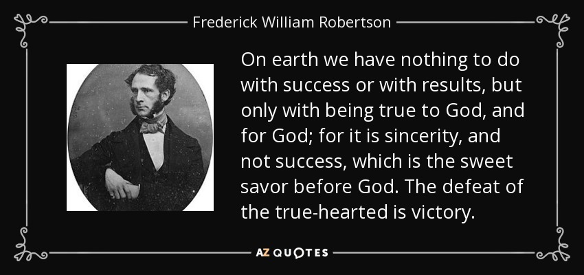 On earth we have nothing to do with success or with results, but only with being true to God, and for God; for it is sincerity, and not success, which is the sweet savor before God. The defeat of the true-hearted is victory.
