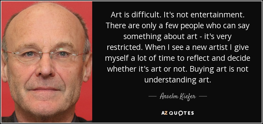 Art is difficult. It's not entertainment. There are only a few people who can say something about art - it's very restricted. When I see a new artist I give myself a lot of time to reflect and decide whether it's art or not. Buying art is not understanding art.