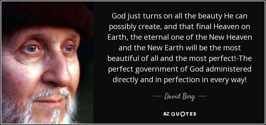 God just turns on all the beauty He can possibly create, and that final Heaven on Earth, the eternal one of the New Heaven and the New Earth will be the most beautiful of all and the most perfect!-The perfect government of God administered directly and in perfection in every way!