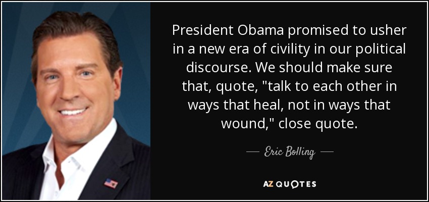 President Obama promised to usher in a new era of civility in our political discourse. We should make sure that, quote, "talk to each other in ways that heal, not in ways that wound," close quote.