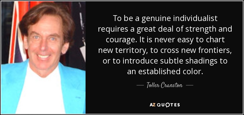 To be a genuine individualist requires a great deal of strength and courage. It is never easy to chart new territory, to cross new frontiers, or to introduce subtle shadings to an established color.
