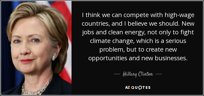 I think we can compete with high-wage countries, and I believe we should. New jobs and clean energy, not only to fight climate change, which is a serious problem, but to create new opportunities and new businesses.