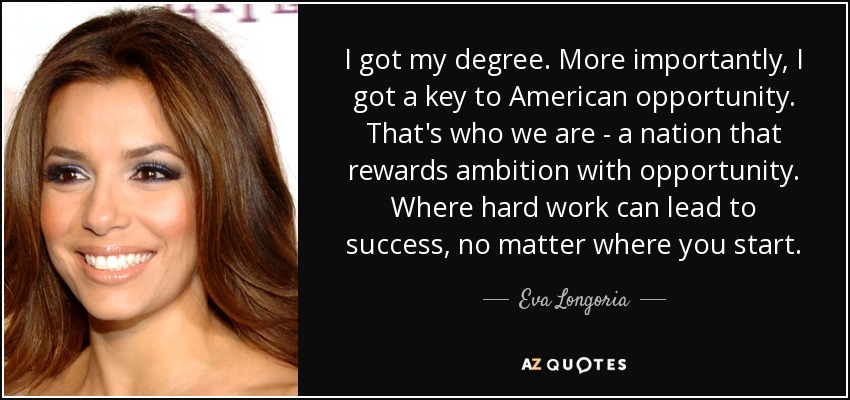 I got my degree. More importantly, I got a key to American opportunity. That's who we are - a nation that rewards ambition with opportunity. Where hard work can lead to success, no matter where you start.
