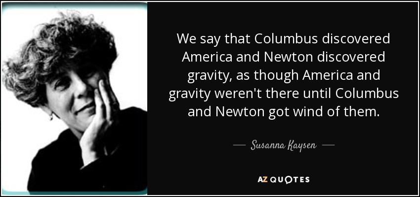We say that Columbus discovered America and Newton discovered gravity, as though America and gravity weren't there until Columbus and Newton got wind of them.