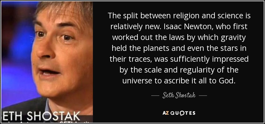 The split between religion and science is relatively new. Isaac Newton, who first worked out the laws by which gravity held the planets and even the stars in their traces, was sufficiently impressed by the scale and regularity of the universe to ascribe it all to God.