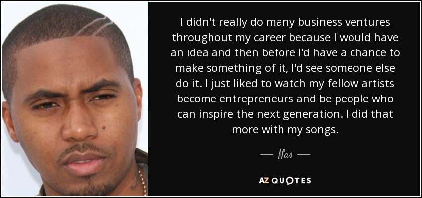 I didn't really do many business ventures throughout my career because I would have an idea and then before I'd have a chance to make something of it, I'd see someone else do it. I just liked to watch my fellow artists become entrepreneurs and be people who can inspire the next generation. I did that more with my songs.